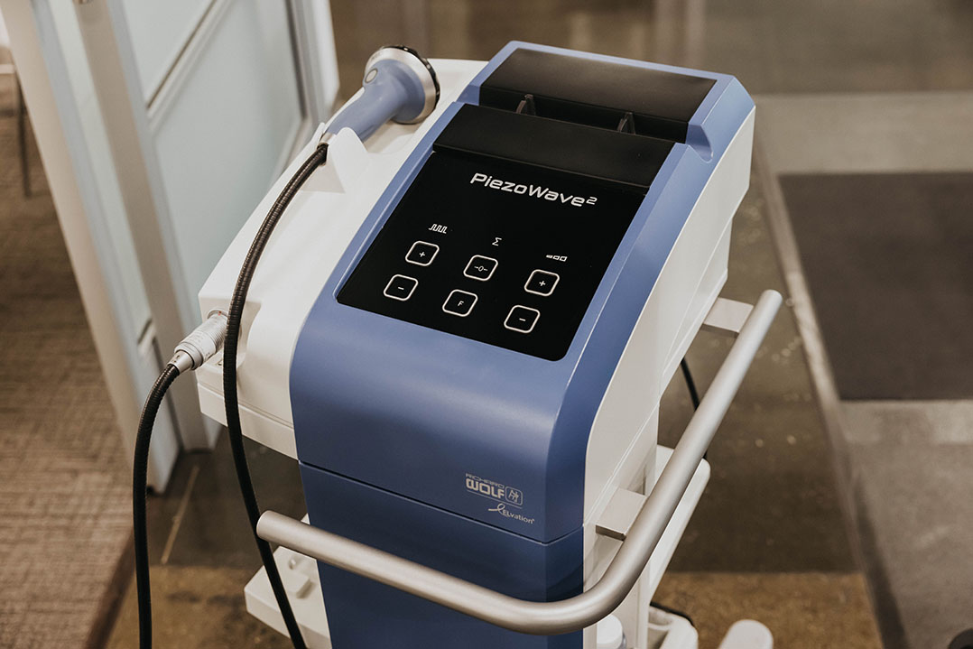 The PiezoWave2 (ShockWave Therapy unit) delivers mechanical energy in the form of sound waves to target tissue, including tenocytes in tendons, fibroblasts in ligaments and skin, osteocytes in bone, chondrocytes in articular cartilage, and endothelial cells in blood vessels, which are all highly responsive to mechanical energy. A handheld device is used to send low energy acoustic waves through the skin by way of a conducting gel.